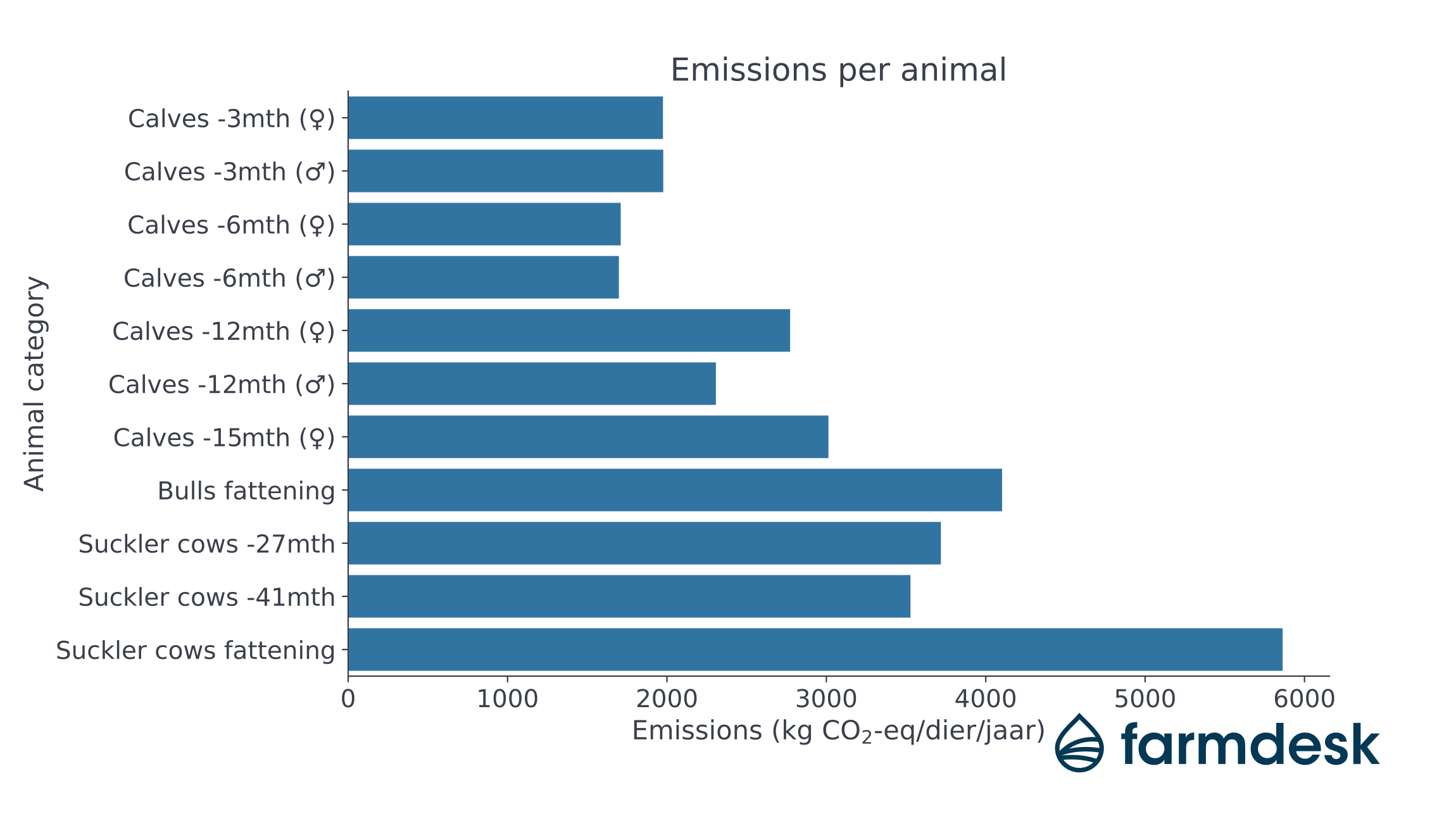 This article presents the expansion of Farmdesk Climate to the beef cattle sector based on a case study at the Vloeikenshoeve, a beef cattle farm with Belgian Blue cattle in Wuustwezel (Belgium). The analysis for 2024 shows that the example farm has a carbon footprint of 16.2 kg CO2-equivalent per kilogram of live weight. Compared to other farms in the sector, this is a relatively low footprint.