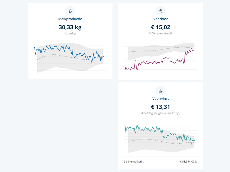 When you want to achieve business goals you may instinctively work against yourself, for example, it may be a conscious choice to produce more milk per cow with higher feed costs, but also a higher feed profit. , but also choice in lower feed costs with lower milk production. Good to know where you stand by having your cost price transparent after each tank milk delivery.