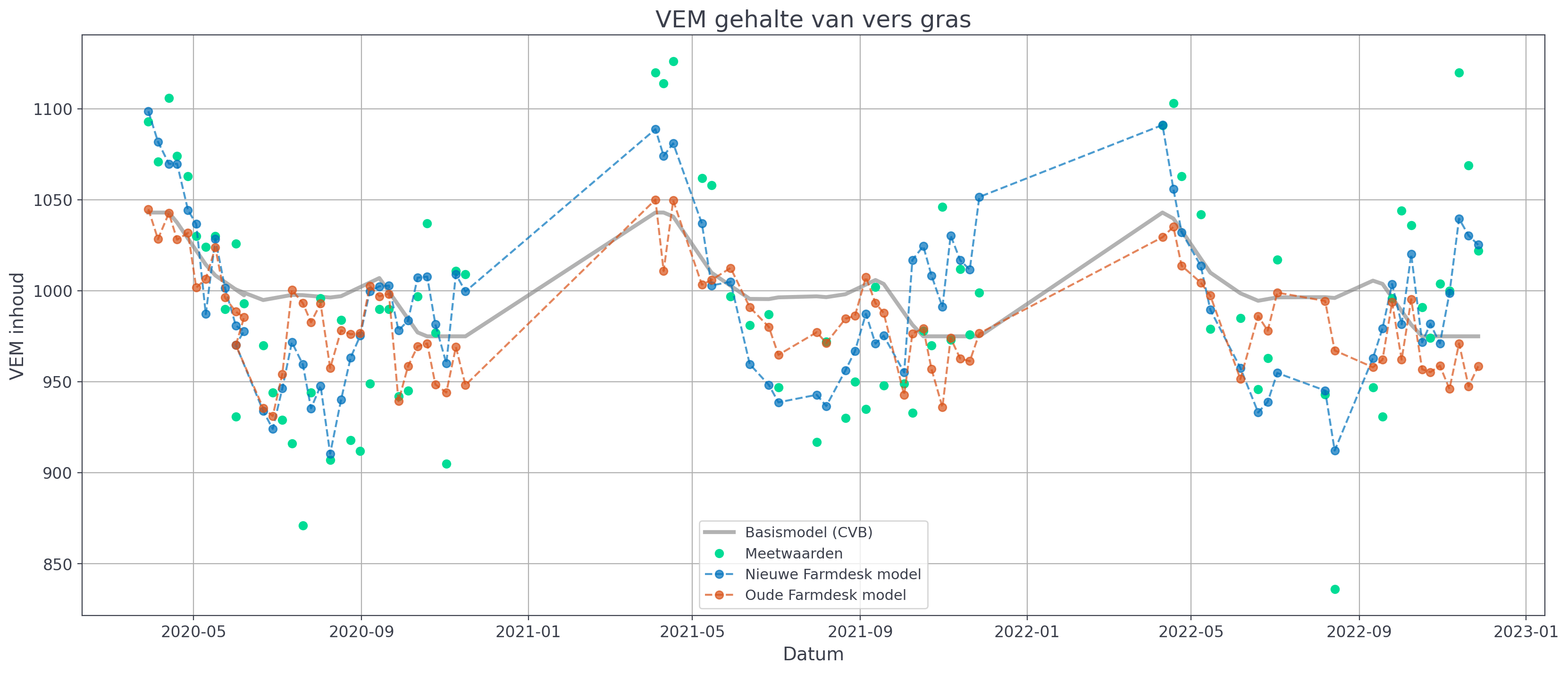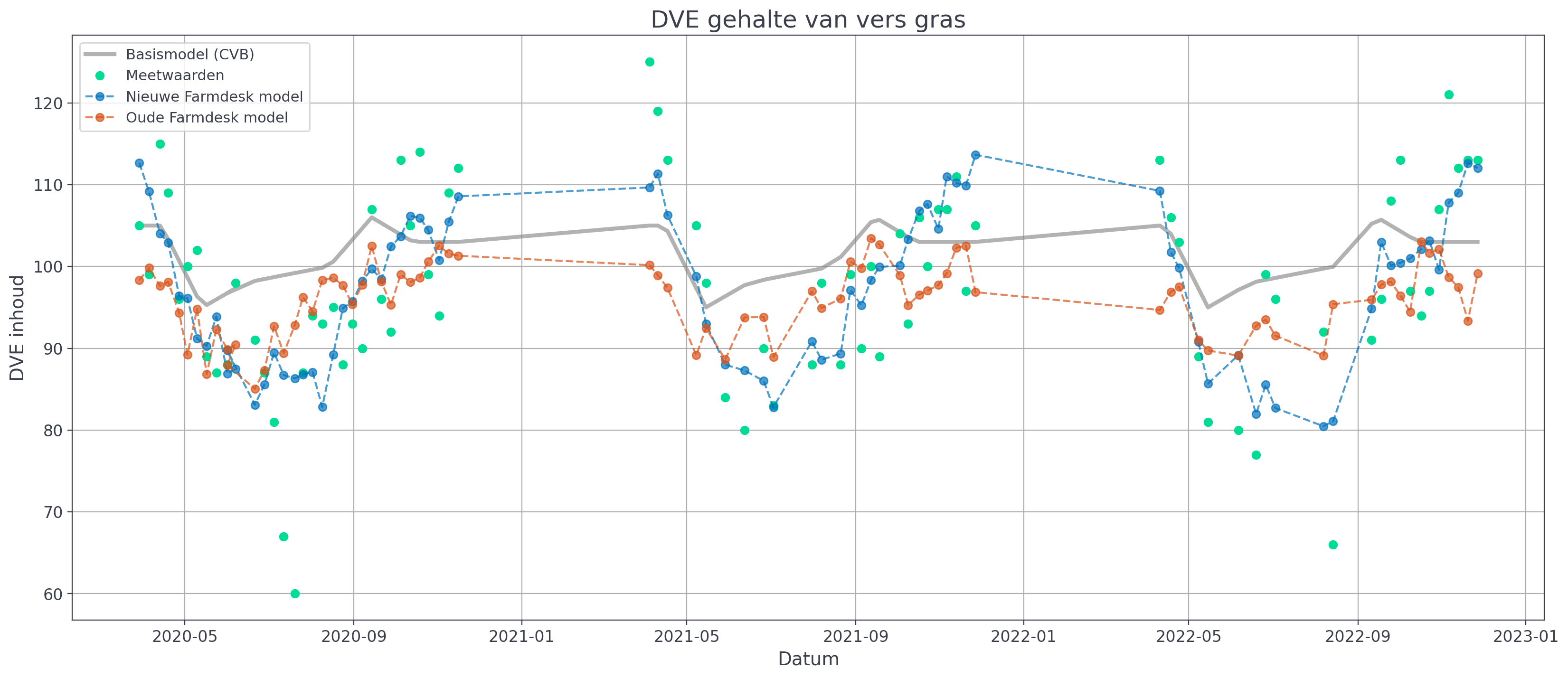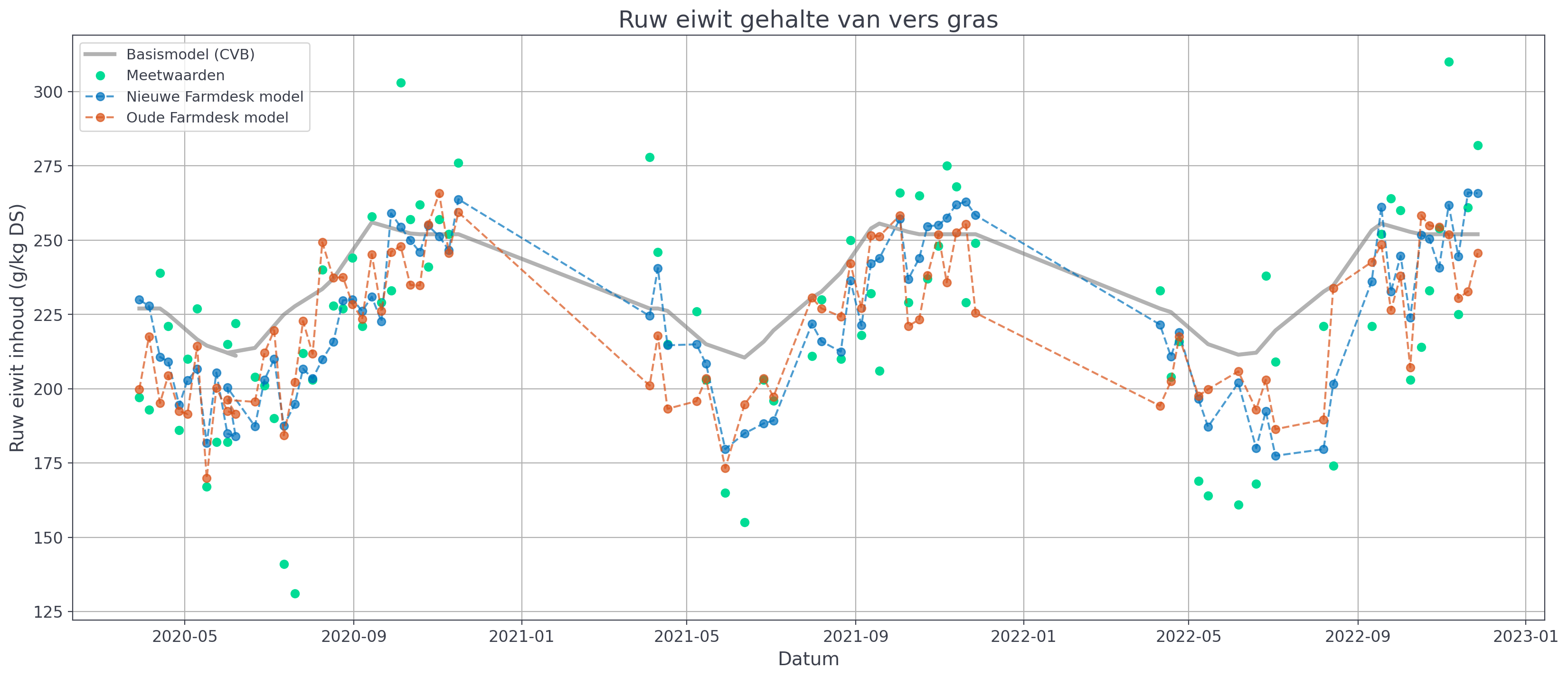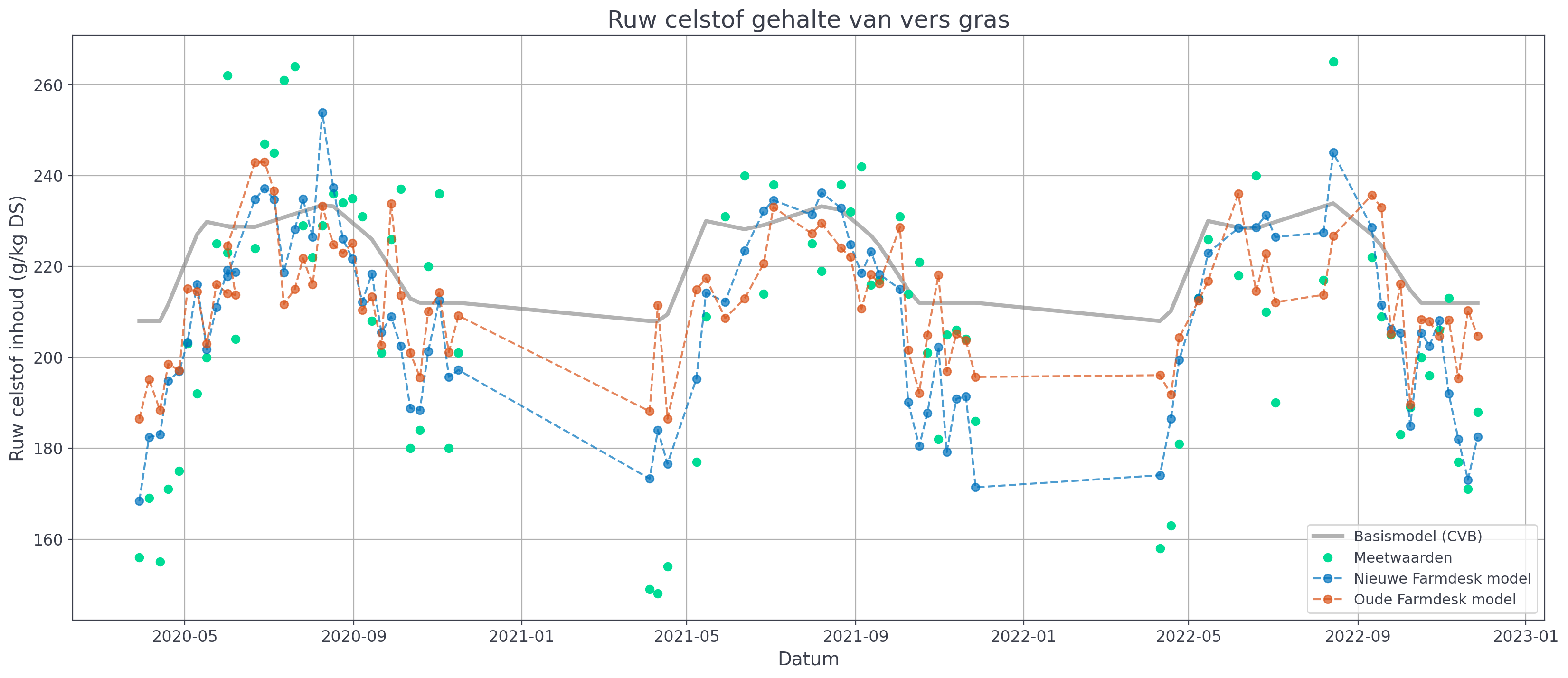 Ook voor ruw eiwit, ruwe celstof en andere kengetallen (niet getoond) scoort het nieuwe model gemiddeld gezien beter.